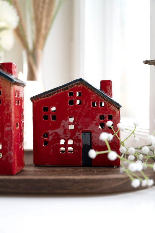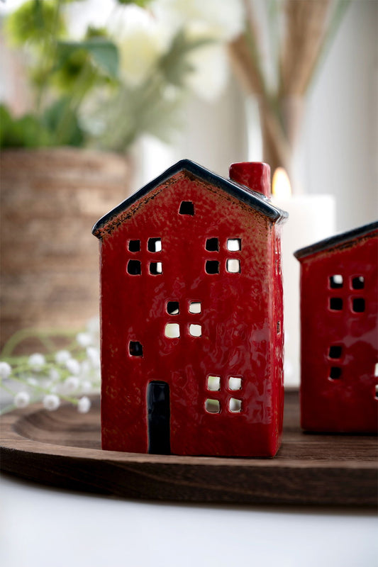 Tilføj ekstra hygge og stemning i dit hjem med vores smukke keramikhuse til fyrfadslys