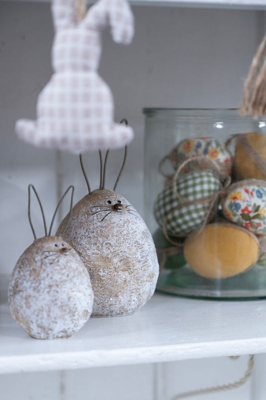 En anden klassiker inden for påskepynt er påskeharer. De fine figurer bringer straks et smil frem hos både børn og voksne, og påskeharerne findes i et utal af størrelser og udtryk. Placer haren ved siden af en kurv fyldt med chokoladeæg eller som dekoration på påskebordet. Se alle vores påskeharer her.