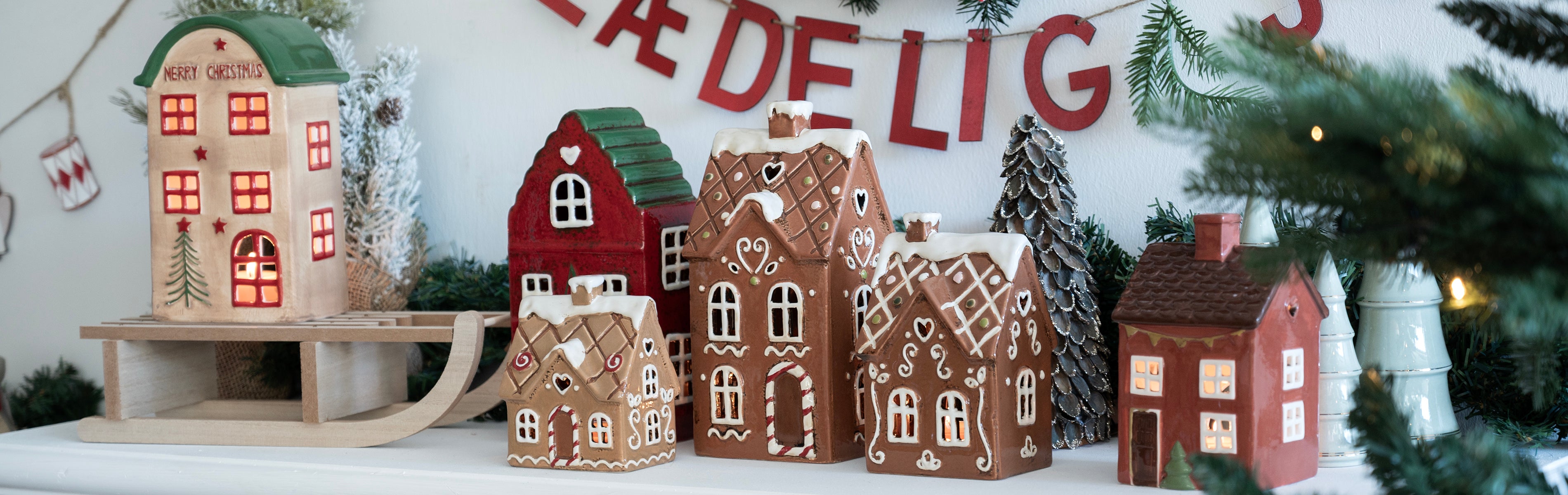 En af vores mest populære varegrupper er vores fine keramikhuse, som fås i mange forskellige designs. Husene tilfører en varme og en hygge til hjemmet, som mange er vilde med, og så kan de bruges både enkeltvis eller sættes sammen ved siden af hinanden. De fine huse til fyrfadslys kan bruges året rundt, men vi har også enkelte huse i vores sortiment som henvender sig primært til juletiden. Julen har en helt særlig betydning for os, da vores rejse startede her. Derfor er vi hos Det Gamle Apotek vilde med jul og alt der har med jul at gøre. En af vores målsætninger er at være totalleverandør på julepynt, og vi har et væld af julekugler og ophæng, fine nisser og figurer og meget andet i vores sortiment. Det tillader jeres kunder at være kreative, når der skal pyntes op til jul. De kan bl.a. slippe fantasien løs med nissedøre og de mange slags tilbehør dertil – et sjovt juletiltag for hele familien. Der er både plads til arbejdsnisser, skovnisser, bagernisser og mange flere. Som inspiration elsker vi at lave nissevideoer og på den måde vise, hvordan nissehjemmene kan sættes op, og hvordan nissen kan drille. Hvert år kommer der nye, sjove drillerier fra nissen, hvilket er et hit hos mange. Skal I være med til at skabe nye hjem til nisserne og sprede juleglæden?