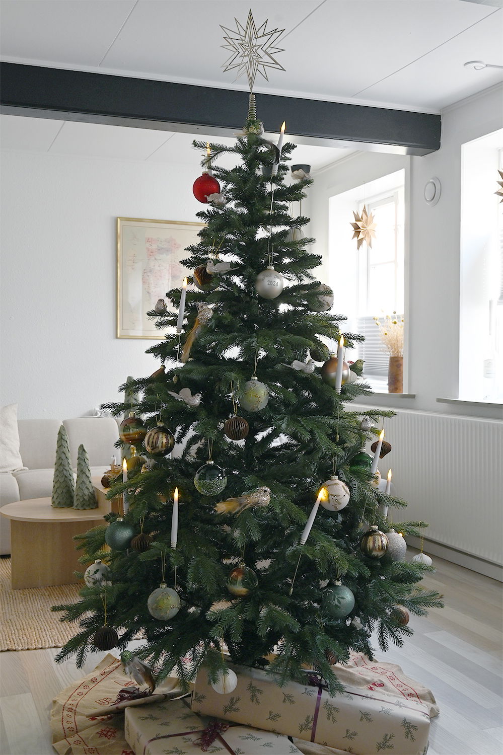 Kunstigt juletræ m. afstivet top H 180cm