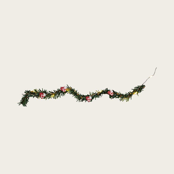 Den fine guirlande til nissedør er med LED, så den kan lyse nissehjemmet op på flotteste vis. Selve guirlanden er 17 cm lang, og den er 32 cm med ledning og batteriboks (ekskl. batterier)