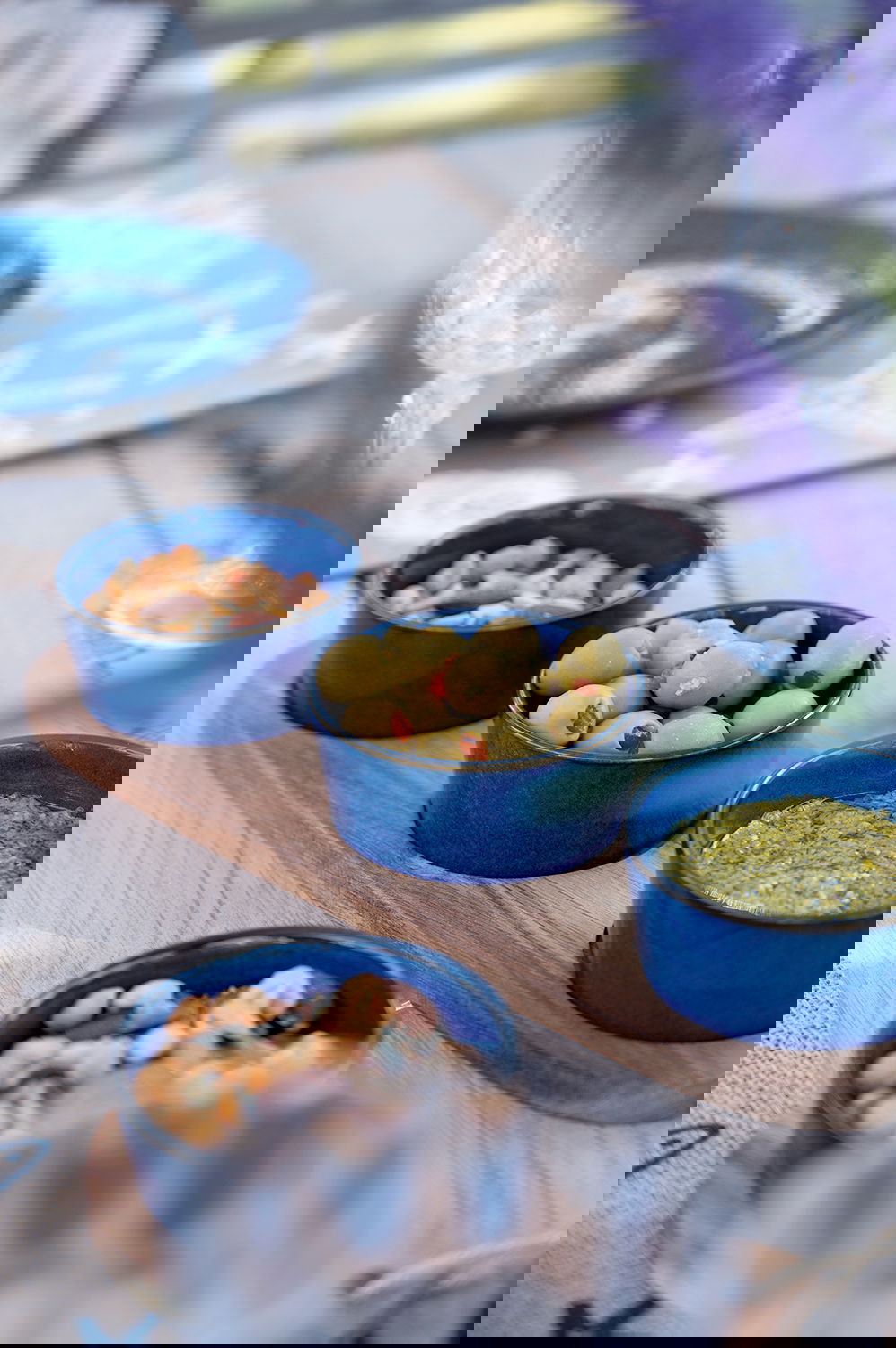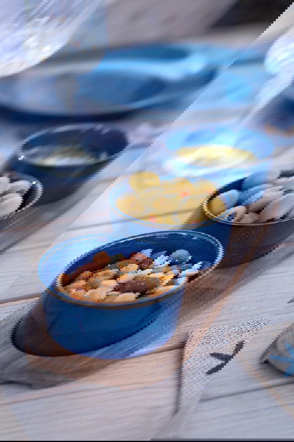 Ceramic/Acacia wood, Blue/ Nature, 4/box